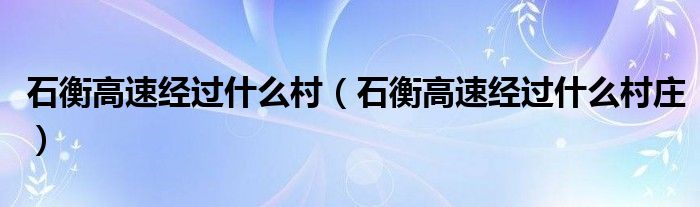 大家好,小育來(lái)為大家講解下。石衡高速經(jīng)過(guò)什么村,石衡高速經(jīng)過(guò)什么村莊很多人還不知道,現(xiàn)在讓我們一起來(lái)看看吧!