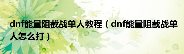 大家好,小育來為大家講解下。dnf能量阻截戰(zhàn)單人教程,dnf能量阻截戰(zhàn)單人怎么打很多人還不知道,現(xiàn)在讓我們一起來看看吧!