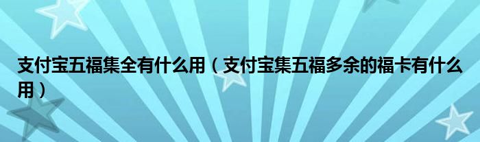 大家好,小育來為大家講解下。支付寶五福集全有什么用,支付寶集五福多余的??ㄓ惺裁从煤芏嗳诉€不知道,現(xiàn)在讓我們一起來看看吧!
