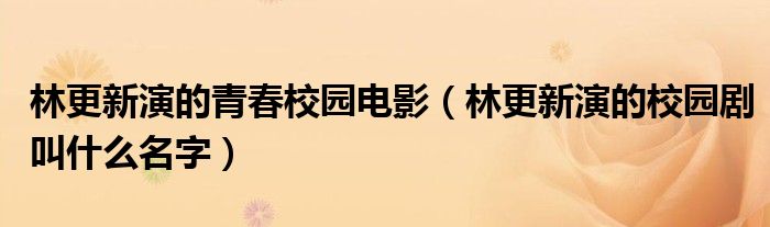 大家好,小育來為大家講解下。林更新演的青春校園電影,林更新演的校園劇叫什么名字很多人還不知道,現(xiàn)在讓我們一起來看看吧!