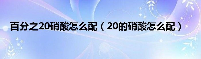 大家好,小育來為大家講解下。百分之20硝酸怎么配,20的硝酸怎么配很多人還不知道,現(xiàn)在讓我們一起來看看吧!
