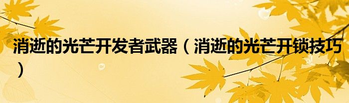 大家好,小育來為大家講解下。消逝的光芒開發(fā)者武器,消逝的光芒開鎖技巧很多人還不知道,現在讓我們一起來看看吧!