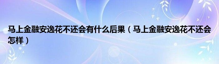 大家好,小育來為大家講解下。馬上金融安逸花不還會有什么后果,馬上金融安逸花不還會怎樣很多人還不知道,現(xiàn)在讓我們一起來看看吧!