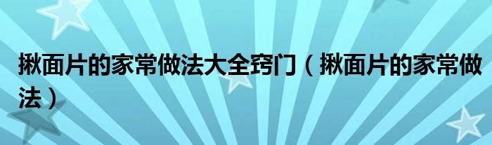 大家好,小育來(lái)為大家講解下。揪面片的家常做法大全竅門,揪面片的家常做法很多人還不知道,現(xiàn)在讓我們一起來(lái)看看吧!