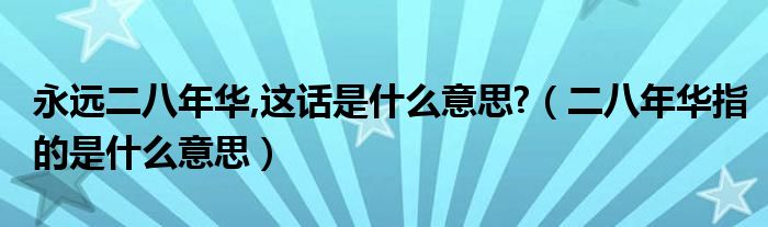 大家好,小育來為大家講解下。永遠(yuǎn)二八年華,這話是什么意思?,二八年華指的是什么意思很多人還不知道,現(xiàn)在讓我們一起來看看吧!