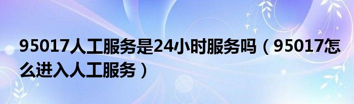 大家好,小育來為大家講解下。95017人工服務(wù)是24小時服務(wù)嗎,95017怎么進入人工服務(wù)很多人還不知道,現(xiàn)在讓我們一起來看看吧!
