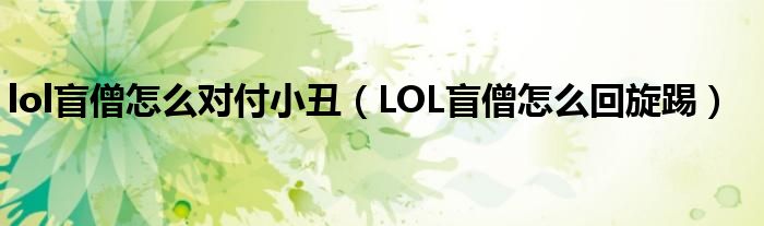 大家好,小育來為大家講解下。lol盲僧怎么對(duì)付小丑,LOL盲僧怎么回旋踢很多人還不知道,現(xiàn)在讓我們一起來看看吧!
