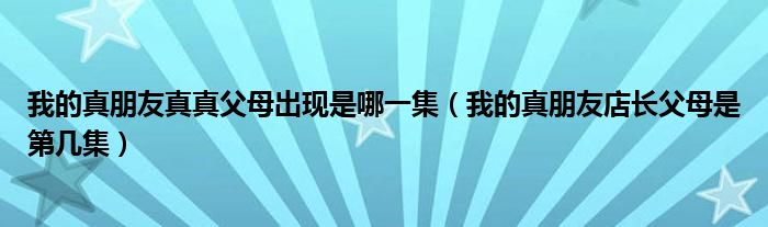 大家好,小育來為大家講解下。我的真朋友真真父母出現(xiàn)是哪一集,我的真朋友店長父母是第幾集很多人還不知道,現(xiàn)在讓我們一起來看看吧!