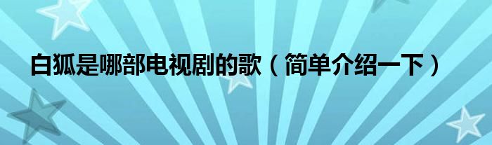 大家好,伊人來為大家解答以上問題。白狐是哪部電視劇的歌,簡單介紹一下很多人還不知道,現(xiàn)在讓我們一起來看看吧!