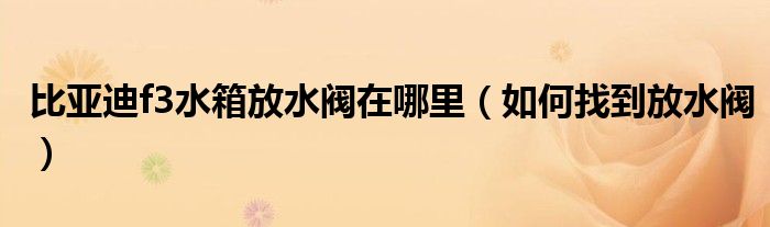 大家好,伊人來(lái)為大家解答以上問(wèn)題。比亞迪f3水箱放水閥在哪里,如何找到放水閥很多人還不知道,現(xiàn)在讓我們一起來(lái)看看吧!