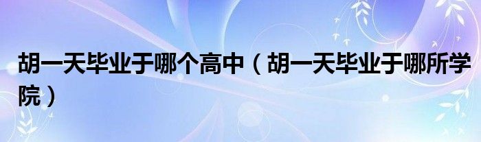 大家好,小育來為大家講解下。胡一天畢業(yè)于哪個高中,胡一天畢業(yè)于哪所學院很多人還不知道,現(xiàn)在讓我們一起來看看吧!