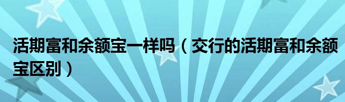 大家好,小育來為大家講解下?;钇诟缓陀囝~寶一樣嗎,交行的活期富和余額寶區(qū)別很多人還不知道,現(xiàn)在讓我們一起來看看吧!