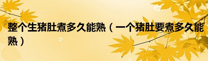大家好,小育來為大家講解下。整個生豬肚煮多久能熟,一個豬肚要煮多久能熟很多人還不知道,現(xiàn)在讓我們一起來看看吧!