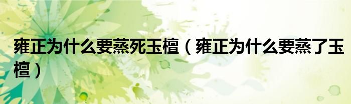 大家好,小育來為大家講解下。雍正為什么要蒸死玉檀,雍正為什么要蒸了玉檀很多人還不知道,現(xiàn)在讓我們一起來看看吧!