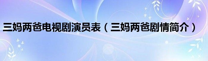 大家好,伊人來為大家解答以上問題。三媽兩爸電視劇演員表,三媽兩爸劇情簡介很多人還不知道,現(xiàn)在讓我們一起來看看吧!