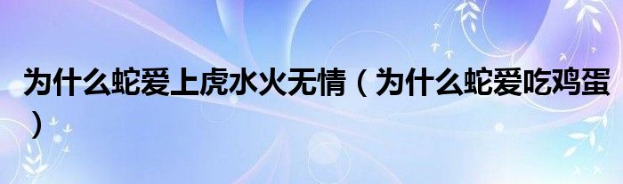 大家好,小育來(lái)為大家講解下。為什么蛇愛(ài)上虎水火無(wú)情,為什么蛇愛(ài)吃雞蛋很多人還不知道,現(xiàn)在讓我們一起來(lái)看看吧!