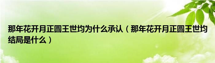 大家好,小育來為大家講解下。那年花開月正圓王世均為什么承認,那年花開月正圓王世均結(jié)局是什么很多人還不知道,現(xiàn)在讓我們一起來看看吧!