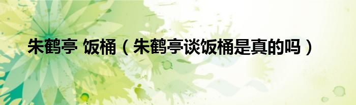 大家好,小育來為大家講解下。朱鶴亭 飯桶,朱鶴亭談飯桶是真的嗎很多人還不知道,現(xiàn)在讓我們一起來看看吧!