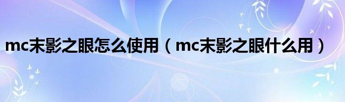 大家好,小育來為大家講解下。mc末影之眼怎么使用,mc末影之眼什么用很多人還不知道,現(xiàn)在讓我們一起來看看吧!