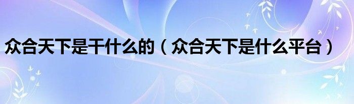 大家好,小育來(lái)為大家講解下。眾合天下是干什么的,眾合天下是什么平臺(tái)很多人還不知道,現(xiàn)在讓我們一起來(lái)看看吧!