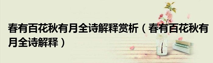 大家好,小育來(lái)為大家講解下。春有百花秋有月全詩(shī)解釋賞析,春有百花秋有月全詩(shī)解釋很多人還不知道,現(xiàn)在讓我們一起來(lái)看看吧!