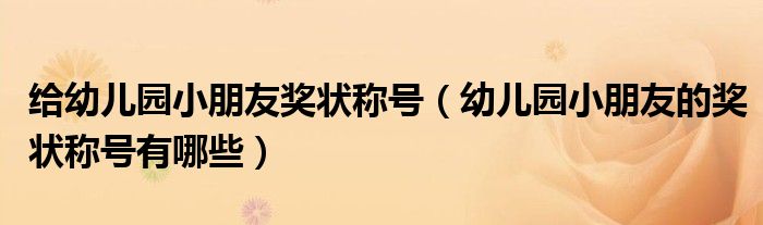 大家好,小育來為大家講解下。給幼兒園小朋友獎(jiǎng)狀稱號(hào),幼兒園小朋友的獎(jiǎng)狀稱號(hào)有哪些很多人還不知道,現(xiàn)在讓我們一起來看看吧!