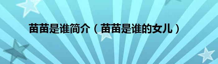 大家好,小育來為大家講解下。苗苗是誰簡介,苗苗是誰的女兒很多人還不知道,現(xiàn)在讓我們一起來看看吧!