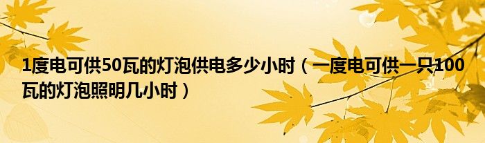 大家好,小育來為大家講解下。1度電可供50瓦的燈泡供電多少小時,一度電可供一只100瓦的燈泡照明幾小時很多人還不知道,現(xiàn)在讓我們一起來看看吧!