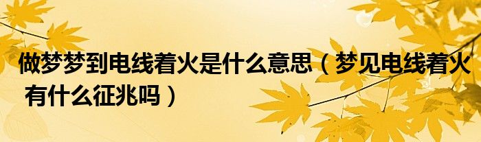 大家好,小育來(lái)為大家講解下。做夢(mèng)夢(mèng)到電線著火是什么意思,夢(mèng)見(jiàn)電線著火 有什么征兆嗎很多人還不知道,現(xiàn)在讓我們一起來(lái)看看吧!