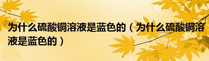大家好,小育來(lái)為大家講解下。為什么硫酸銅溶液是藍(lán)色的,為什么硫酸銅溶液是藍(lán)色的很多人還不知道,現(xiàn)在讓我們一起來(lái)看看吧!