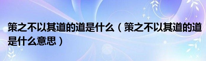 大家好,小育來(lái)為大家講解下。策之不以其道的道是什么,策之不以其道的道是什么意思很多人還不知道,現(xiàn)在讓我們一起來(lái)看看吧!