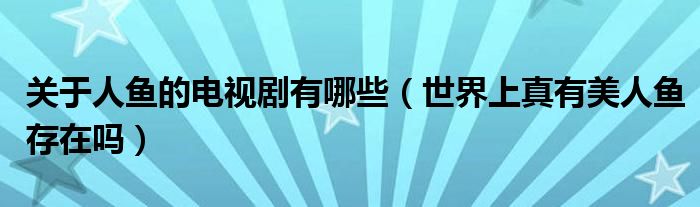 大家好,伊人來為大家解答以上問題。關(guān)于人魚的電視劇有哪些,世界上真有美人魚存在嗎很多人還不知道,現(xiàn)在讓我們一起來看看吧!