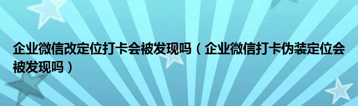 大家好,小育來為大家講解下。企業(yè)微信改定位打卡會被發(fā)現(xiàn)嗎,企業(yè)微信打卡偽裝定位會被發(fā)現(xiàn)嗎很多人還不知道,現(xiàn)在讓我們一起來看看吧!