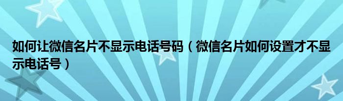 大家好,小育來為大家講解下。如何讓微信名片不顯示電話號碼,微信名片如何設(shè)置才不顯示電話號很多人還不知道,現(xiàn)在讓我們一起來看看吧!