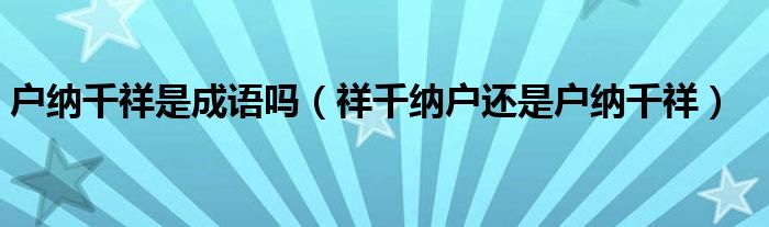 大家好,小育來為大家講解下。戶納千祥是成語嗎,祥千納戶還是戶納千祥很多人還不知道,現(xiàn)在讓我們一起來看看吧!