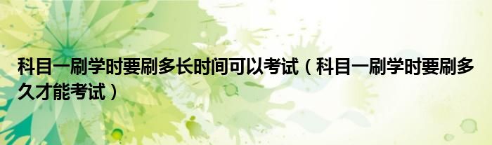 大家好,小育來(lái)為大家講解下。科目一刷學(xué)時(shí)要刷多長(zhǎng)時(shí)間可以考試,科目一刷學(xué)時(shí)要刷多久才能考試很多人還不知道,現(xiàn)在讓我們一起來(lái)看看吧!