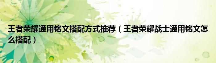大家好,小育來為大家講解下。王者榮耀通用銘文搭配方式推薦,王者榮耀戰(zhàn)士通用銘文怎么搭配很多人還不知道,現(xiàn)在讓我們一起來看看吧!
