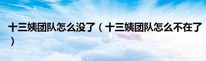 大家好,小育來為大家講解下。十三姨團(tuán)隊怎么沒了,十三姨團(tuán)隊怎么不在了很多人還不知道,現(xiàn)在讓我們一起來看看吧!