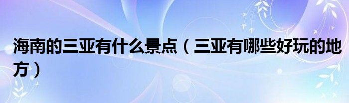 大家好,伊人來為大家解答以上問題。海南的三亞有什么景點,三亞有哪些好玩的地方很多人還不知道,現(xiàn)在讓我們一起來看看吧!