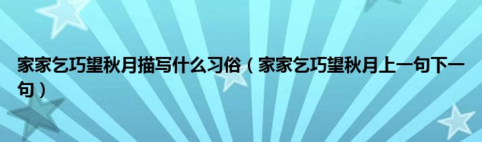 大家好,小育來為大家講解下。家家乞巧望秋月描寫什么習俗,家家乞巧望秋月上一句下一句很多人還不知道,現(xiàn)在讓我們一起來看看吧!