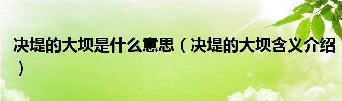 大家好,伊人來為大家解答以上問題。決堤的大壩是什么意思,決堤的大壩含義介紹很多人還不知道,現(xiàn)在讓我們一起來看看吧!