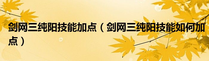 大家好,伊人來為大家解答以上問題。劍網(wǎng)三純陽技能加點,劍網(wǎng)三純陽技能如何加點很多人還不知道,現(xiàn)在讓我們一起來看看吧!