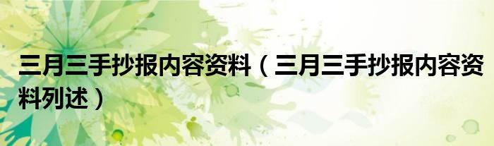 大家好,伊人來為大家解答以上問題。三月三手抄報內(nèi)容資料,三月三手抄報內(nèi)容資料列述很多人還不知道,現(xiàn)在讓我們一起來看看吧!