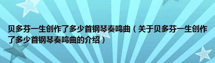 大家好,小新來(lái)為大家解答以上的問題。貝多芬一生創(chuàng)作了多少首鋼琴奏鳴曲,關(guān)于貝多芬一生創(chuàng)作了多少首鋼琴奏鳴曲的介紹很多人還不知道,現(xiàn)在讓我們一起來(lái)看看吧!