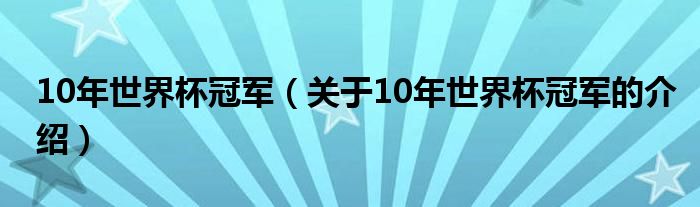 大家好,小新來為大家解答以上的問題。10年世界杯冠軍,關(guān)于10年世界杯冠軍的介紹很多人還不知道,現(xiàn)在讓我們一起來看看吧!