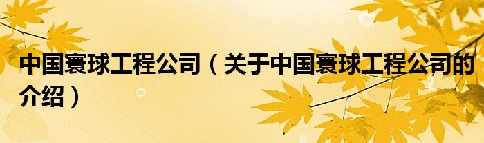 大家好,小新來為大家解答以上的問題。中國寰球工程公司,關(guān)于中國寰球工程公司的介紹很多人還不知道,現(xiàn)在讓我們一起來看看吧!
