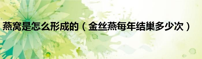 大家好,伊人來為大家解答以上問題。燕窩是怎么形成的,金絲燕每年結巢多少次很多人還不知道,現(xiàn)在讓我們一起來看看吧!