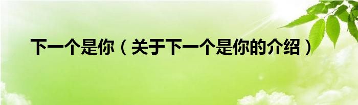 大家好,小新來為大家解答以上的問題。下一個是你,關于下一個是你的介紹很多人還不知道,現(xiàn)在讓我們一起來看看吧!