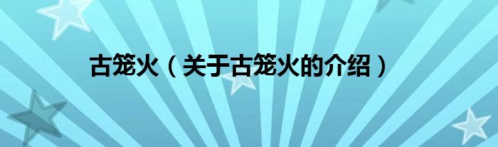 大家好,小新來為大家解答以上的問題。古籠火,關(guān)于古籠火的介紹很多人還不知道,現(xiàn)在讓我們一起來看看吧!