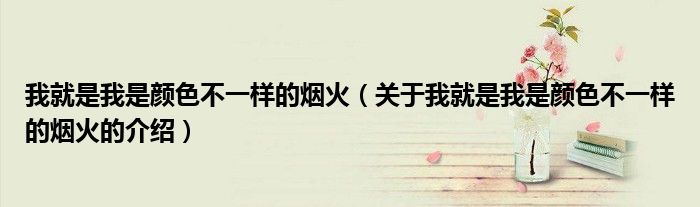 大家好,小新來(lái)為大家解答以上的問(wèn)題。我就是我是顏色不一樣的煙火,關(guān)于我就是我是顏色不一樣的煙火的介紹很多人還不知道,現(xiàn)在讓我們一起來(lái)看看吧!